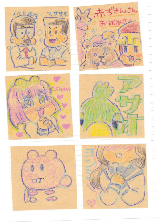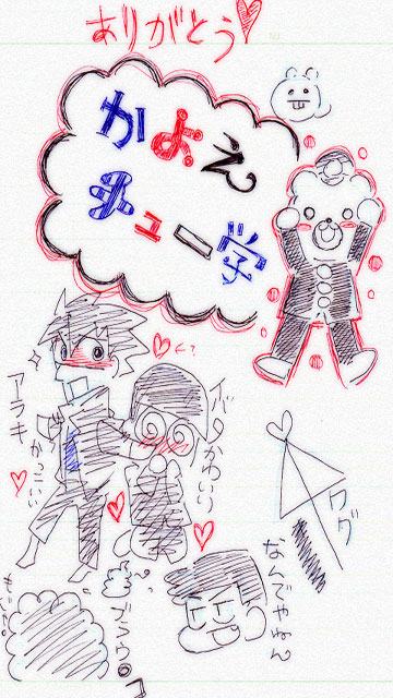 2014/06/06 Category : おえかき。 おいわい。 おめでとうありがとう3周年! いつもと違うタッチで がんまりました。 追記は後程。 いろいろ後回しにしてますが、 いつも大丈夫、では ありませんよ?! メモ用紙に色鉛筆でガッと書きました。 ヨシミちゃんがうまくいきました。 結構これは描いてて楽しかったです。 ボールペンで書いてます。ぐりぐり。 中学生の私がはまったら? たぶん毎日のた打ち回っていたと 思われます。 PR Comment0 Comment Comment Form お名前name タイトルtitle メールアドレスmail address URLurl コメントcomment パスワードpassword