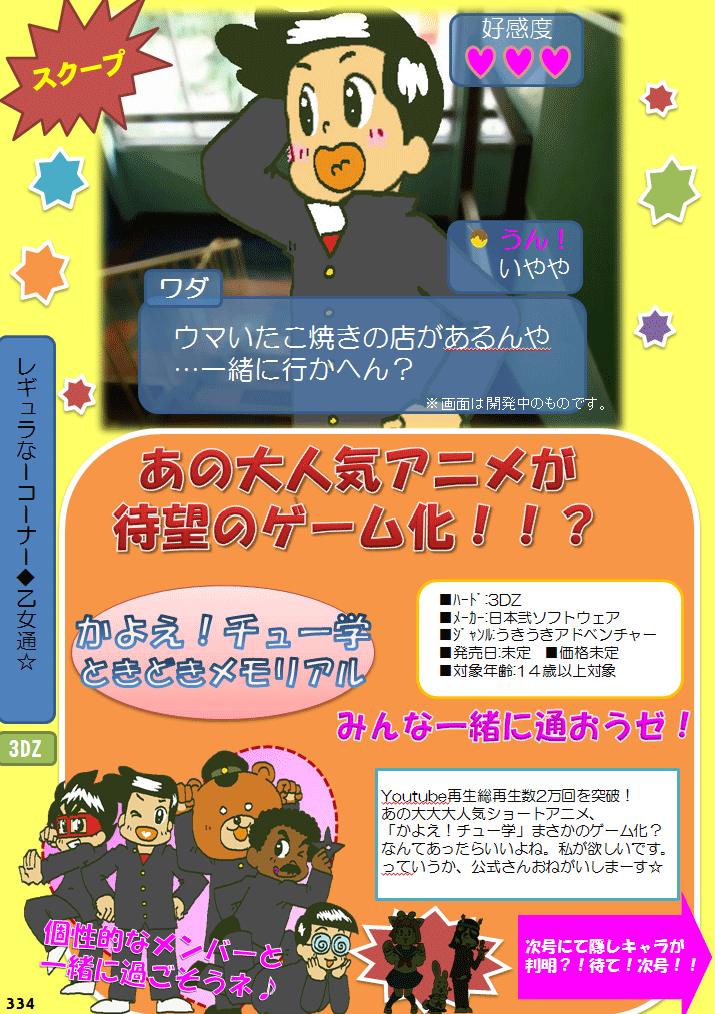 2014/04/01 Category : おえかき。 ついたち。 それっぽく、ぱちものっぽく。 ときどきメモリアル。 公式が最終回迎えても、 ずっと応援し続けますよ! 公式の絵に似せる予定でしたが、 間に合わないので自分絵になりました。 サーセン。 アイコンのたこ焼き。雑クオリティ。 縮小万歳!! みんなまとめて攻略したいっすね。 へけ。 公式さんから色をスポイトで 頂いております。ちゅちゅ。 オオシマちゃんが太ましいことに。。。 イナバちゃんとヒラタくんが わりとかわいく描けたのでよし! よしったらよし! ヒラタくん描いてると、 南国少年パプワくんが思い出します。 アラシヤマどすえ。 友情ぱわーーーー!!! わりとバレてる感じの加工。 背景写真はぼかしてぼかしております。 裏ビデオちゃうよ?!(やめなさい) 小ネタをこちょこちょ仕込んでありますが、 いくつわかりますかね・v・ わかったら教えてくださいませ。 (いくつ仕込んだか忘れたずら) 背景の元写真はこちらです。 お借りしました! ありがとうございました。 ttp://wallpaper.hirolu.com/ PR Comment0 Comment Comment Form お名前name タイトルtitle メールアドレスmail address URLurl コメントcomment パスワードpassword