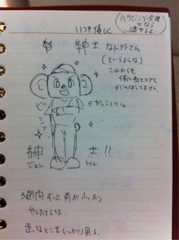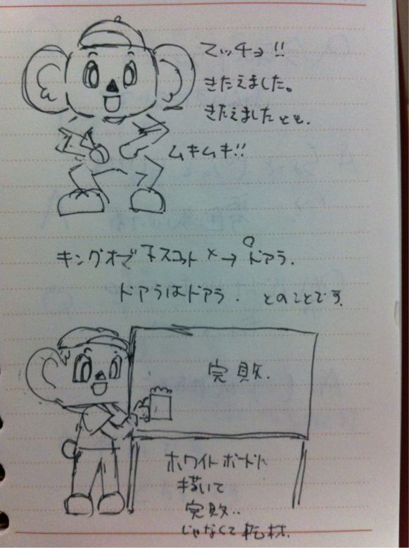 2014/02/22 Category : もそもそ。 (⌒l´・▲・`l⌒) さー、このツアーの目玉企画! ドアラディナーショー!!! え?かよチュ関係あらへん? まぁ…ええやん。(偽関西弁) 本人(?)からですが、 ドアラのことを 「キングオブマスコット」と 呼ぶ方がいます。 が、 そーではなくて、 「ドアラはドアラ」だそうですヨ。 今年はガッチリ鍛えたので、 なにかしら大丈夫なようです。 乾杯を完敗と間違える オトボケぶりからスタート!!! 食べたり飲んだりする合間に ドアラさんがステージに現れて、 質問に答えたり、 ビンゴしたりしました。 <質問コーナー> あらかじめツアー参加者から 質問を募集して、ドアラさんが 筆談で答えてくださいました。 Q.今年のドラゴンズの雰囲気はどう? A.「ちょっとピリッとしています」 と途中まで書いて慌てて書き直し、 →「雰囲気いいです」 ん?なんで書き直したん? 確かに監督とコーチごっそり 変わってぴりぴりしとるヨ? Q.○○(子供の名前)はバナナがすきだけど、 ドアラはなにがすき? A.「○○がすきだよ」 相思相愛か!! Q.選手が頑張っているけど、 ドアラは何に頑張ってますか? A.「みなさんをおもてなしすること」 ここで例の 「お・も・て・な・し」のジェスチャー。 Q.怖そうなデニー友利コーチと 森繁コーチ、うまくやっていけそう? A.「仲良しですどちらもです」 ★森繁和とは?(ニコニコ大百科) 顔がおっかないで有名な森コーチ。 スーツ姿は「どこの組じゃい!」状態ですが、 本当はとっても面白いおじさんです。 選手を見る「眼」は確かで、 鋭く観察されています。 ★デニー友利とは?(ニコニコ大百科) まーこの方もおっかない。 ノックでボールが取れない選手たちを ビシ!バシ!しごいていましたネ。 ほんとに、もー 今年はビシバシお願いいたしますヨ。 話が逸れました。 Q.ドアラの今期の目標は? A.「ケガしない」 そうだね、去年骨折したもんネ。 最後に・・・ 「いつもやさしく紳士のようなドアラさん。 どうかこれからもお体に気をつけて、 頑張ってください」 というメッセージが読まれ、 紳士!!!!!! ジェントルメン!!!! 効果音をつけるなら、 「ビッシィィィイ!!!」 でしょうか。 ドアラさんからは 「ゆっくり休んで沖縄をたのしんでください」 とのメッセージ。 本当にありがとうございます。 来てよかったー。 さんぜんえんもするカレンダーも 買ったよ!高いよ! 高い高い他界。 (※やまとさんのテンションも かつてない高さ) PR Comment0 Comment Comment Form お名前name タイトルtitle メールアドレスmail address URLurl コメントcomment パスワードpassword